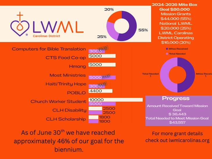 Here's what the LWML Carolinas District has accomplished with your MITES in this biennium's Mission Grant Goals!